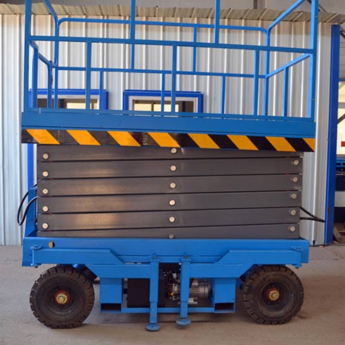 移動式升降機是用途廣泛的高空作業專用設備。它的剪叉機械結構,使升降臺起升有較高的穩定性,寬大的作業平臺和較高的承載能力,使高空作業范圍更大、并適合多人同時作業。升降動力分為220V或380V電源,柴油機,或電瓶動力源,特殊環境也可采用防爆泵站及防爆電器。升高4——22米,載重0.3—3噸。采用意大利和國產液壓泵站,臺面使用防滑絕緣扣板,具有防滑,絕緣、安全,請放心使用。它使高空作業效率更高,安全更保障。市政路燈維修維護、交通、電力高空作業、小區路燈維修維護、電力高空架線、交警監控維修維護、車間燈具維護、物業小區高空作業及維修。